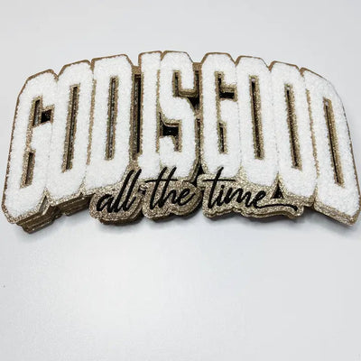- Chenille patches featuring glitter felt with a satin border: