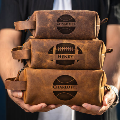 Our handcrafted leather dopp kits are designed for travelers who appreciate quality and style. Made from luxurious full grain leather and available with custom engraving, these toiletry bags are the ideal personalized travel gift for weddings, corporate giveaways, or personal milestones.